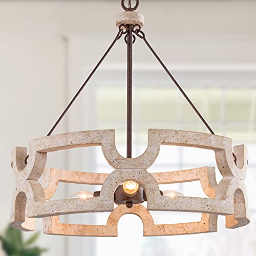- IDEAL DIMENSION: Size of ring shape wood frame: 19 1/2" diameter x 6" height; Total height of light fixture: 21". This farmhouse chandelier comes with 59" adjustable chain and cord for you to find the best height.